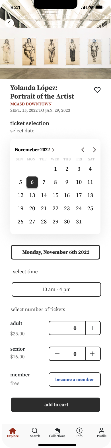 An iOS mobile app to enhance the MCASD patron experience and build a pathway to museum membership in the era of COVID.